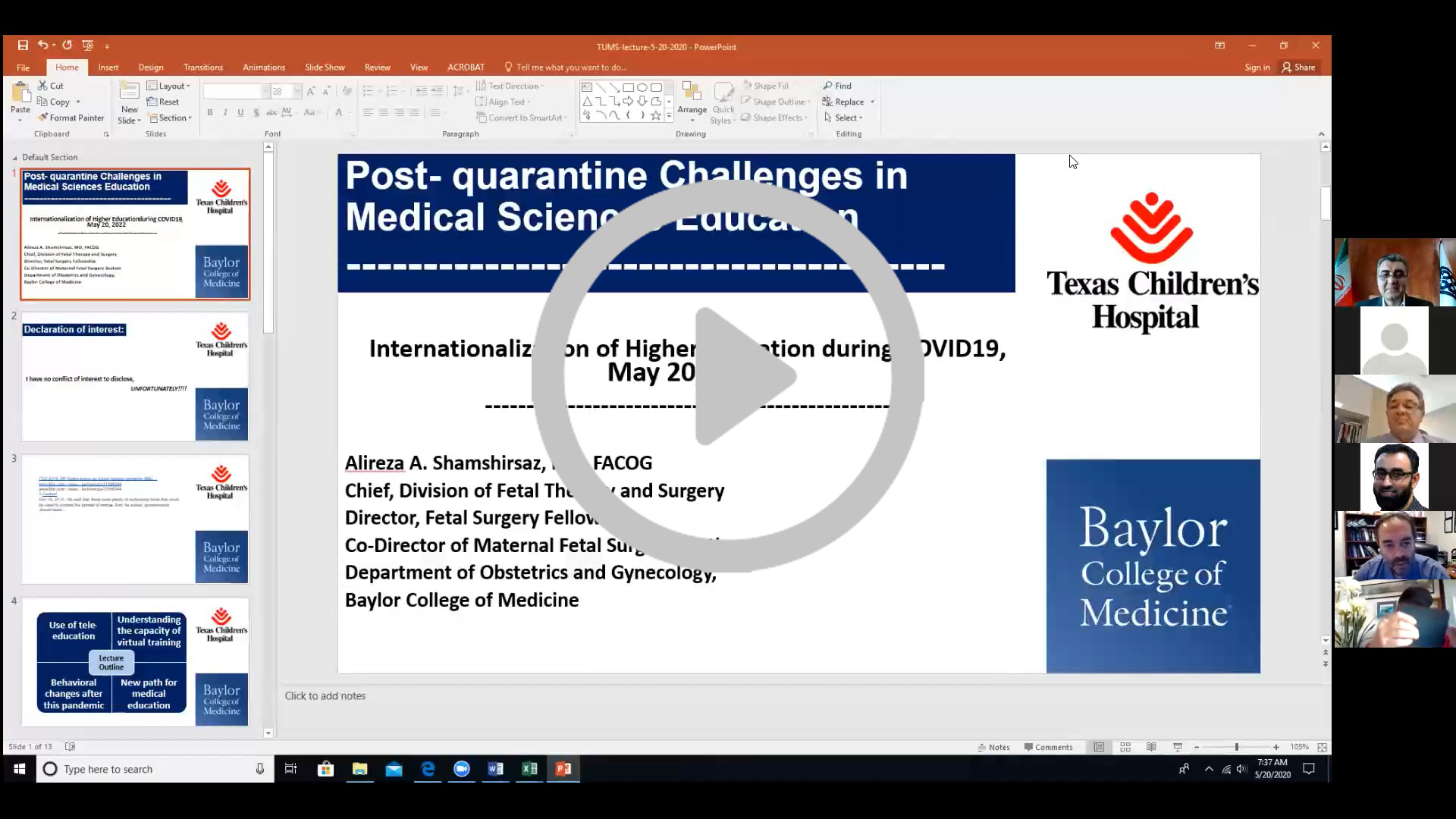 Lecture Title: Lessens Learn for Medical Education During the Coronavirus Pandemic Keywords: Tele-education, Virtual Training, Set up Infra Structure, Behavioral Changes, New Path |